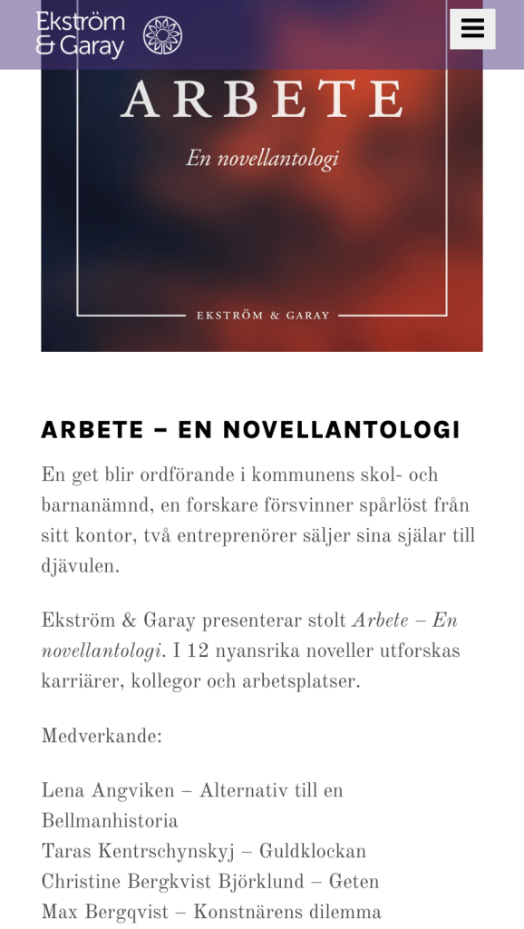 Publicerat den 25 april, 2023 av Christine BergkvistNovell publicerad på ljudbokstjänster Nu finns min novell Geten på Storytel, Bookbeat och Nextory utgiven av Ekström & Garay i Arbete – En novellantologi. I 12 nyansrika noveller utforskas karriärer, kollegor och arbetsplatser. Dela detta: Klicka för att dela på X (Öppnas i ett nytt fönster) X Klicka för att dela på Facebook (Öppnas i ett nytt fönster) Facebook Gilla Laddar in …